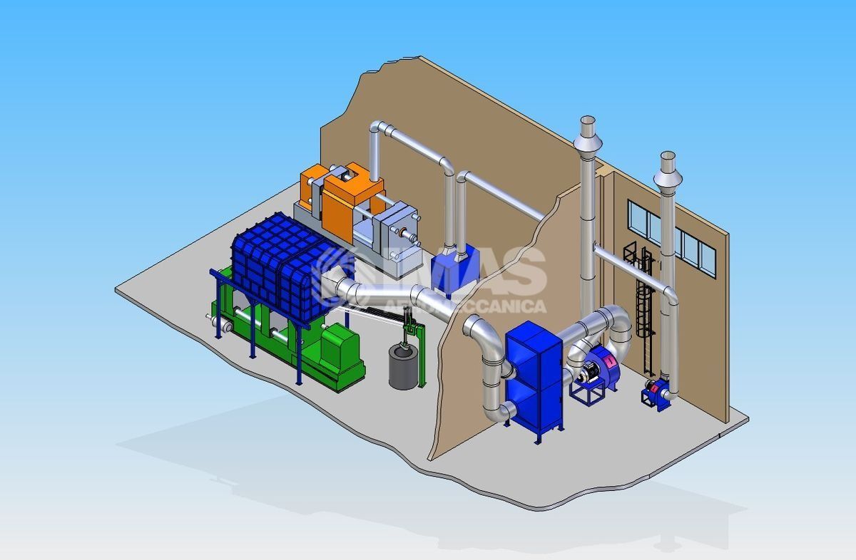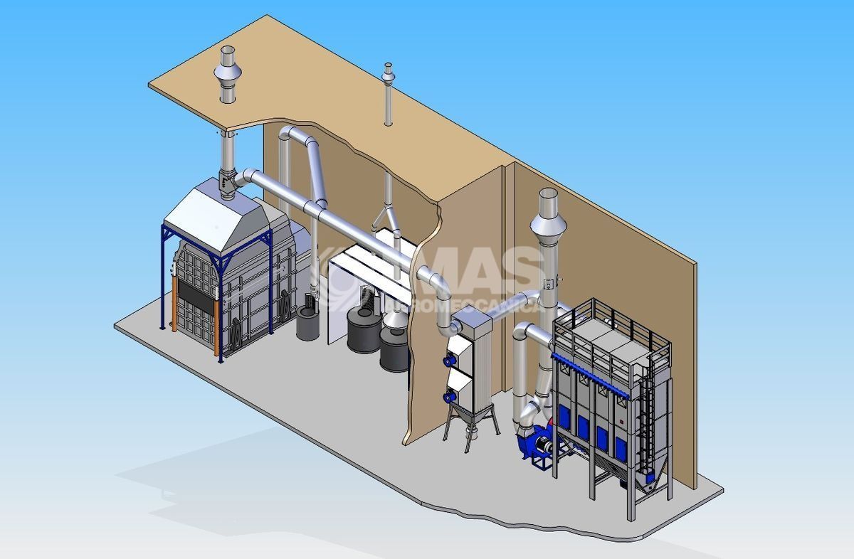 Las instalaciones garantízan la reducción de los humos, aerosoles y polvo que provienen de trabajos con máquinas de prefusión de distinto tonelaje, hornos fusores y de espera de varias tipologías y dimensiones en las operaciones de fusión y escoria; carruseles, catenarias