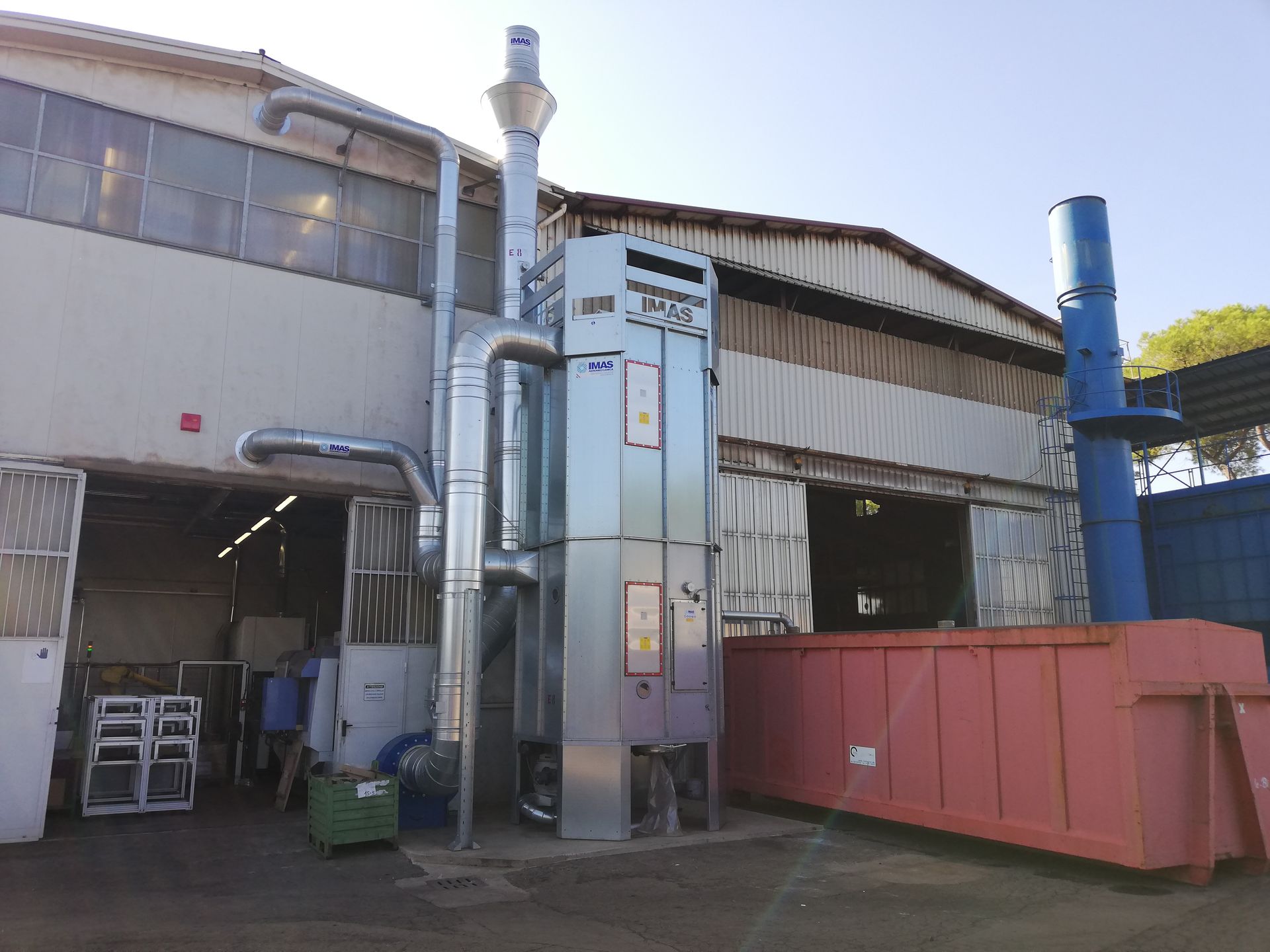 - En el caso de trabajos continuados IMAS Aeromeccanica proyecta y desarrolla instalaciones centralizadas con sistemas de filtración a células metálicas serie fws o bien con bolsas en fibra de vidrio de la serie FTS.