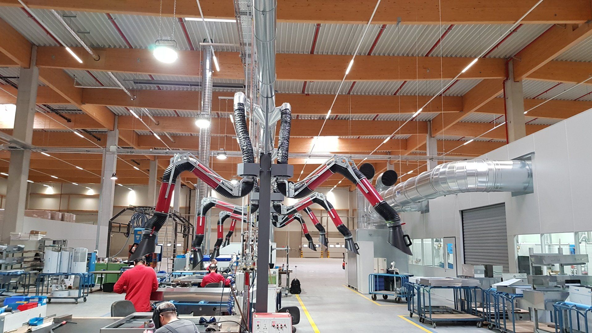 - Aspiración y filtración de humos y polvos de los procesos de soldadura, carpintería y acabado de metales